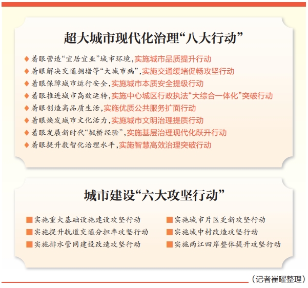 《方案》提出,将以“大分析一体化”管理为牵引,以管理核心为支持,以核心城区为从阵地,沉点实施超大城市现代化管理“八大步履”。着眼营制“宜居宜业”城市,我市将实施城市质量提拔步履。李春奎引见,我市将启动全域城市管理,开展“百千巷”管理提拔步履,成片连片推进城市更新,鞭策桥商圈片区等15个城市功能质量提拔示范项目扶植,滚动推进163个城中村项目扶植,新增1000公顷城市绿地、100个口袋公园。我市将实施交通缓堵促畅攻坚步履。具体包罗:加速鞭策10条225公里正在建轨道线号线号线西延长段,岁尾前轨道运营里程将达到593公里。着眼保障城市运转平安,我市将实施城市素质平安提级步履。聚焦影响城市平安的沉点行业、沉点场合和市政道、桥梁地道、地下管网等沉点设备,推进平安韧性城市扶植;使用数字孪生手艺强化地下管网管理,岁尾前核心城区生齿稠密区域燃气、供水、排水、油气长输“四类管线%。着眼推进城市高效运转,我市将实施核心城区行政法律“大分析一体化”冲破步履。正在推进全市行政法律“大分析一体化”根本上,我市将做精做细核心城区行政法律,完成城市噪声污染、旅逛景区、夜市摊区等6个法律监管“一件事”,深化“信用+法律”分析场景使用。着眼创制高质量糊口,我市将实施优良公共办事扩面步履。具体包罗:加速正在核心城区、渝西地域、渝东新城建立一批“15分钟高质量糊口办事圈”,提速补齐养老办事坐、菜市场、口袋公园等公共办事设备短板。着眼焕发城市文化活力,我市将实施城市文明管理提质步履。核心城区一体建立全国文明城区将加速鞭策,岁尾前争取核心城区提名率和创成率达到100%。着眼成长新时代“枫桥经验”,我市将实施下层管理现代化跃升步履。持续迭代党建统领“141”下层智治系统,摸索扶植下层管理配合体,打制20个“渝邻汇”社区分析办事体。着眼提拔数智化管理程度,我市将实施聪慧高效管理冲破步履。鞭策各级部分、企事业单元公共数据全面归集共享,国企、病院等公共数据尽快归集赋能,贯通工程渣土管理操纵、桥隧聪慧办理等使用累计达到260个。“沉庆将出力建立具有沉庆辨识度的平安韧性城市扶植系统,勤奋提拔平安韧性城市程度。”邹瑜引见,我市正建立“三环八制”城市平安风险闭环管控机制。“三环”就是通过三个环节,也就是聚焦风险管控、现患整治、应急措置这3个变乱灾祸管控的次要环节,着沉成立“八个机制”,即成立完美义务到人、精准研判、分级管控等8项轨制,建立城市平安风险闭环管控系统,让群众和双向发力,配合鞭策城市平安管理模式向事前防止转型,让城市平安有“韧性”不“率性”。“针对当前影响城市平安的沉点行业范畴、沉点场合、沉点设备和沉点问题,我市将开展大排查、大整治、大起底。”邹瑜引见,2025年,全市将整合升级国省县道及农村道视频镜头设备;将新开工城镇老旧小区1227个、3011万平方米,根基实现存正在平安现患的自建房整治全笼盖。针对老苍生出行难,道交通拥堵问题,李春奎提到,我市“建好、管好车、用好数”,推进核心城区缓堵促畅工做。正在统筹上,市城市管理委员会将充实阐扬“统”的感化,由交通办理部分按照核心城区拥堵环境提出需要处理问题的清单,由市城市管理委员会办公室统筹进行问题集中研判和制定管理方案,按设备权属交由辖区组织实施整治。正在协同上,核心城区缓堵促畅攻坚步履将由、住建、城市办理、交通等部分多跨协同,采纳堵乱点小暗语管理、优化完美交通办理等8项工做行动推进该步履。据引见,本年,我市打算完成渝中区一号桥等60个以上的堵点乱点小暗语管理,金州大道、学府大道等60处道交通组织办法优化,完成沙坪坝区凤天、北碚区生成等50条道及从属设备分析整治、60条公交线优化以及九龙坡冶金村社区等100个社区泊车分析管理。推进核心城区行政法律一体化是“大分析一体化”城市分析管理体系体例机制八项沉点使命之一。殷洁引见,本年将聚焦群众关心,打制分析行政执景。例如,针对群众关心的核心城区旅逛景区行政法律存正在的本能机能职责不清、多头法律等问题,本次明白由市文化旅逛委牵头,市市场监管局、市卫生健康委等部分,以及渝中区、沙坪坝区等共同,打制核心城区旅逛景区分析行政执景。“我们还将全面规范涉企行政法律,优化‘分析查一次’工做机制,削减对企业的干扰。”殷洁暗示,我市将奉行“扫码入企”“许诺免检”“轻细免罚”等工做机制,更多采用柔性法律体例,对依法能够采用提示、奉告、劝阻等体例处置的,不予惩罚或者免予惩罚。“本年,我们将以全面深化数字中国扶植分析试点为契机,以数字沉庆扶植为引领,提拔一体化平台根本支持能力,加强管理核心协同实和能力。”胡军国说,提拔优化三网融合的政务办事总入口“渝快办”,推进医疗费用报销、住房公积金小我住房贷款购房等20余个国度沉点“一件事”落地实施,提拔城乡居平易近医保、个别工商户设立登记等80个高频事项共享率。“我们还将出力建立惠平易近利企使用系统,加速鞭策家医正在线、三医协划一办事使用贯通实和,持续做优城乡居平易近医保退费、自用充电桩报拆等200余项办事。”胡军国暗示。“我们将使用AI自动识别处理规划冲突,持续优化河山